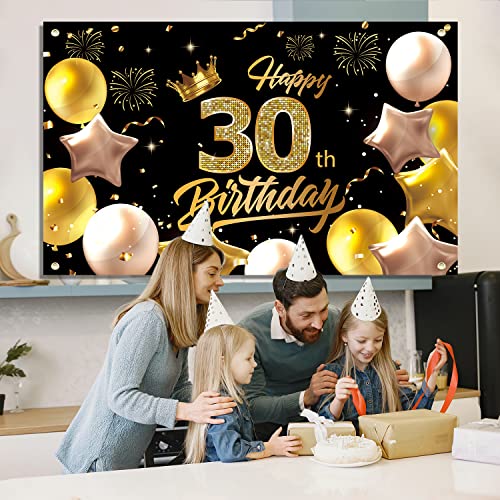 30 Anni Compleanno Festa Decorazioni Oro Nero, 30 Striscione di Buon Compleanno per Uomo Donna, Poster di Tessuto Banner Sfondo Fotografico Bandiera Happy Birthday, 180x110cm