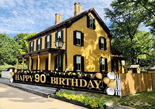 90 Anni Decorazioni Compleanno,Happy Birthday Banner,Buon Compleanno Decorazione di Festa per Uomo Donna,Poster di Tessuto Sfondo Fotografico Feste di Compleanno