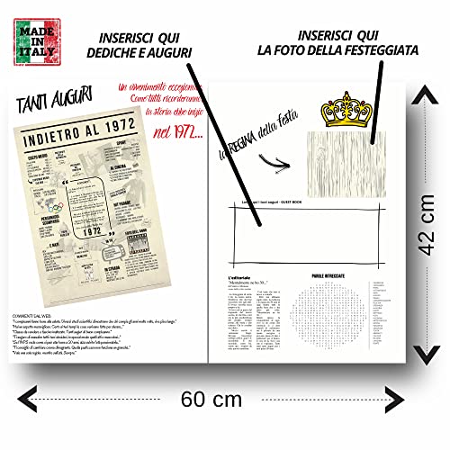 Formato A3 maxi (30x42)cm. Regalo perfetto e felicità inclusa: sia che tu stia cercando regali per l'anniversario di 50 anni o decorazioni divertenti per compleanni, matrimoni o riunioni scolastiche, questo poster sarà sicuramente molto apprezzato. Scopri fatti storici, memorabili e divertenti sull'Italia del 1972.