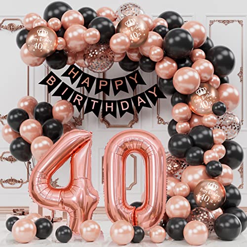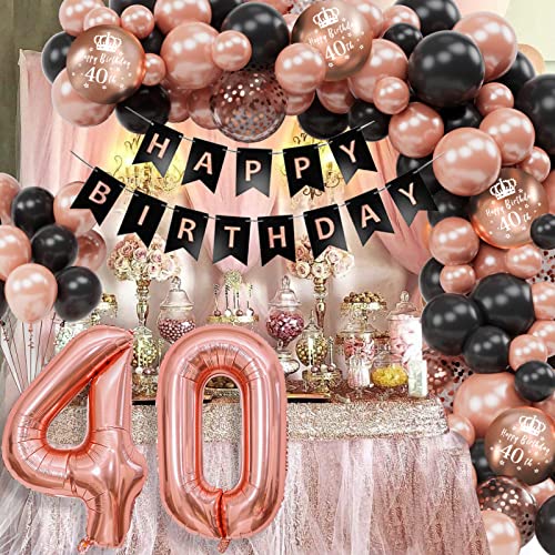 40 anni Palloncini Compleanno, Compleanno Decorazioni Palloncini 40 anni Donna, Nero Oro Ros Ghirlanda Palloncini Set con Coriandoli Palloncini, Banner di Buon Compleanno per 40 anni Compleanno Feste