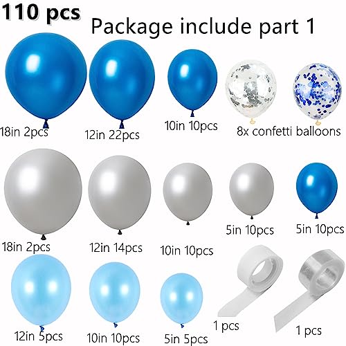 ✨18 anni palloncini: 32 pollici '18' palloncino foil,1 set striscione "HAPPY BIRTHDAY", 1 set gagliardetto, 18 "stella palloncino foil * 4, 30 "palloncino foil corona * 1, 18" palloncino lattice (blu scuro * 2, argento * 2), 12 "palloncino lattice (blu scuro * 22, argento * 14, Azzurro * 5, coriandoli blu * 4, coriandoli argento * 4), 10" palloncino lattice(Blu scuro * 10, Argento * 10, Azzurro * 10), 5" palloncino lattice (Blu scuro * 10, Argento * 10, Azzurro * 5)