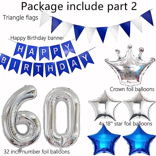 ✨60 anni palloncini: 32 pollici '60' palloncino foil,1 set striscione "HAPPY BIRTHDAY", 1 set gagliardetto, 18 "stella palloncino foil * 4, 30 "palloncino foil corona * 1, 18" palloncino lattice (blu scuro * 2, argento * 2), 12 "palloncino lattice (blu scuro * 22, argento * 14, Azzurro * 5, coriandoli blu * 4, coriandoli argento * 4), 10" palloncino lattice(Blu scuro * 10, Argento * 10, Azzurro * 10), 5" palloncino lattice (Blu scuro * 10, Argento * 10, Azzurro * 5)
