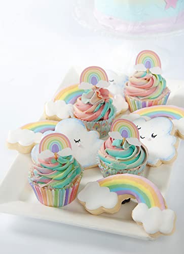 Anniversary House 12 topper per torta arcobaleno pastello, 4,3 x 3,5 centimetri per cupcake, carta, decorazioni per feste arcobaleno pastello, J148