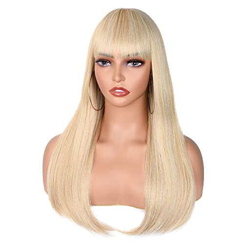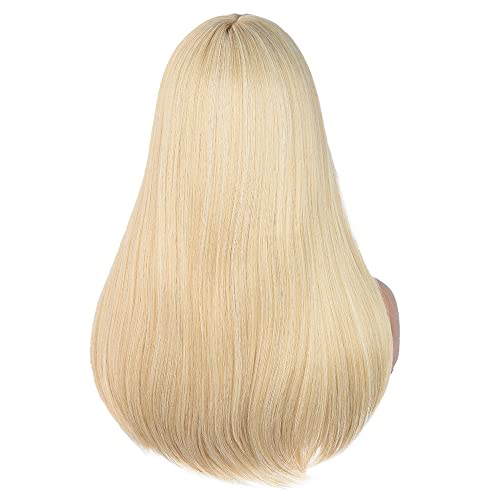 Annivia Parrucche lunghe e setose dritte con frangia per donna parrucca sintetica senza pizzo per donne alla moda parrucca per capelli dall'aspetto naturale resistente al calore (platino)
