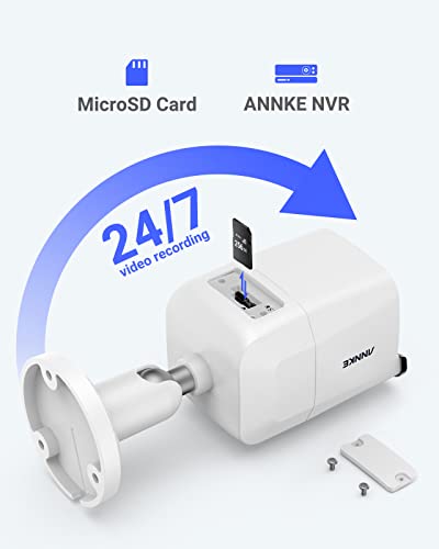 ♫ Supporta fino a 256GB TF Card ♫ La telecamera di sorveglianza bullet Ethernet ha uno slot per schede TF, che consente agli utenti di inserire una scheda TF fino a 256 GB (non inclusa) nella telecamera per la registrazione di video. Gli utenti possono anche collegare la telecamera a un NVR con un semplice cavo di rete per la trasmissione di dati e potenza e ottenere registrazioni 24 ore su 24, 7 giorni su 7 tutto l'anno
