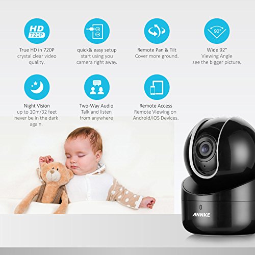 Annke Telecamera IP Camera Wireless 720P Videocamera Sorveglianza 1280 x 720P Sistema di sicurezza, H.264, Visione Notturna, IP66, Pan/Tilt, Audio bidirezionale, P2P, Dome Camera