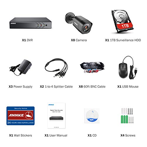 ANNKE Kit Videosorveglianza DVR 1080P Lite 8 Canali 8 Bullet Camera Sorveglianza 720P Videocamera Sorveglianza Manuale Italiano Email Allarme 3 Snapshot H.264+ IP66 Visione Notturna 1TB HDD