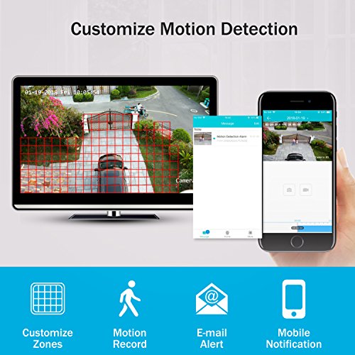 【Email Allarme 3 Snapshot & P2P & Motion Detection】 Rilevamento del movimento con funzione di allarme e-mail./ Accesso remoto su Android e iOS, App gratuita per la visualizzazione e la registrazione da remoto con tecnologia P2P.