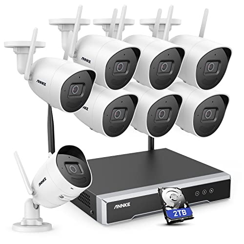 ANNKE WS500 - Set telecamera di sorveglianza WLAN da 5 MP, formato video H.265+, 8 CH 5 MP NVR, 8 telecamere radio 5 MP con antenne MIMO 2T2R supporta visione notturna EXIR 3.0, con 2 TB HDD