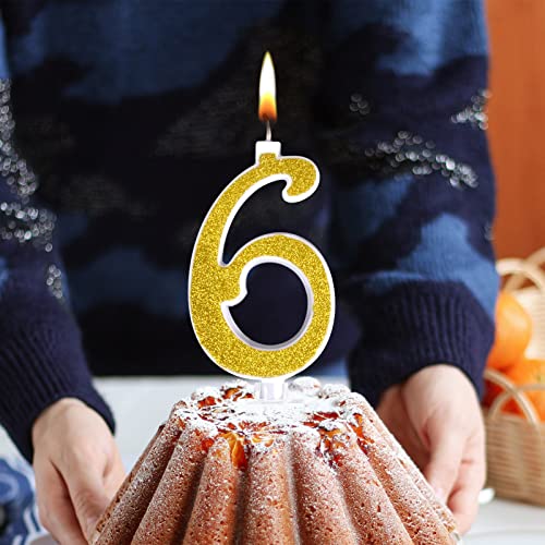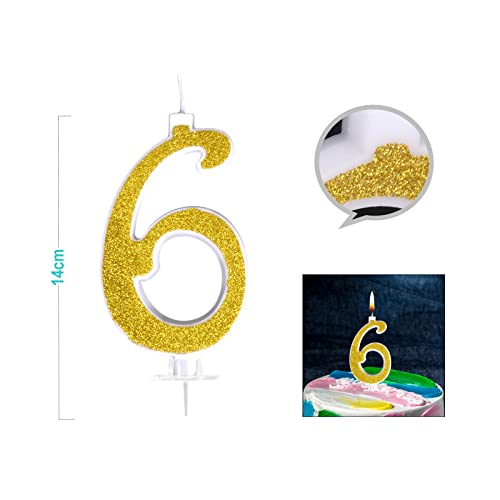 6 Anno Candele di Compleanno Oro Scintillanti, Candeline Compleanno Particolari Numeri 6 Grandi, Adatto A Feste di Compleanno