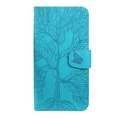 Annuo - Custodia a portafoglio per Samsung S10, motivo: albero per Samsung S10, con chiusura a portafoglio, magnetica, per Samsung Galaxy S10, antiurto, in pelle 3D, grana farfalla, colore: Blu