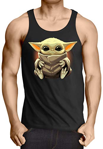 A.N.T. Another Nerd T-Shirt Chibi Yoda Tank Top Uomo Canotta Canottiera Mini Mando Cacciatore di Taglie, Dimensione:S