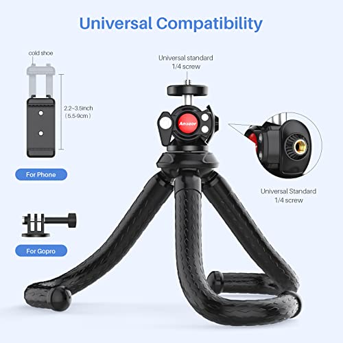 Anozer Treppiede flessibile per telefono o fotocamera,supporto per treppiede per iPhone con telecomando,clip per telefono,adattatore per dispositivi esterni come luce di riempimento o microfoni