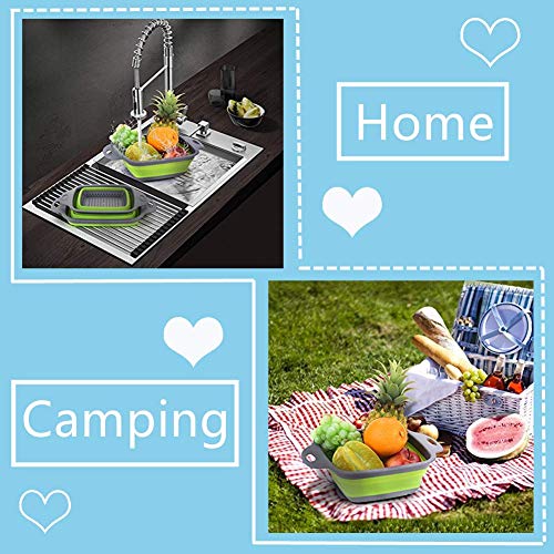 ANPI 2 Pezzi Scolapasta Pieghevole in Silicone, Colino Setaccio Cesto con Maniglie per Cibo Verdura Frutta, Non-Tossico Sicuro Antiaderente Durabile, Quadrato, Verde
