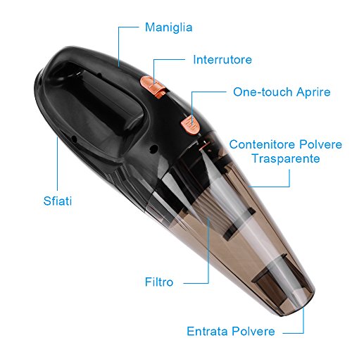 Aspirapolvere Potente: L'aspirapolvere da auto da 12volt, 106W, 2.8K-3.0KPA può pulire in modo efficiente e accurato la polvere all'interno della vostra auto, come briciole, capelli, detriti, liquidi ecc. Facile da utilizzare, semplicemente spingere l'interruttore in avanti e indietro per accendere / Fuori dal vano auto.