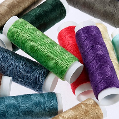 Anpro 39 gomitoli di filo da cucire, 39 colori, in poliestere 402, 37 colori diverse, 1 gomitolo di filo argentato e 1 di filo dorato 39 Couleurs