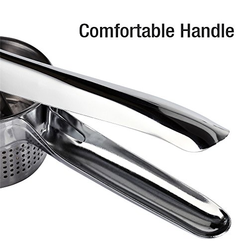 Acciaio inossidabile Materiale - Realizzata in robusto acciaio inox con finitura spazzolata che è garantito per resistere a macchie, odori, sapori, ruggine, la corrosione, ossidazione, e deformazione. Con perforato maglia fine colino in acciaio inossidabile impedisce la polpa di scivolare attraverso. La piastra metallica preme in patate bollite sbucciate, di piccole particelle di aria infuso per Instant purè di patate soffici senza graffiare la vostra ciotola
