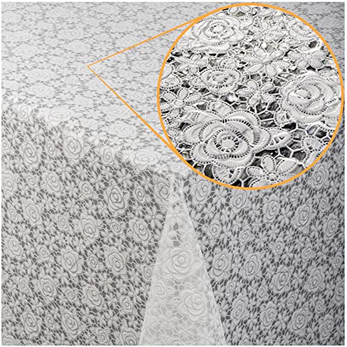 Tovaglia lavabile con effetto pizzo in larghezza di 138 cm, è una tovaglia facile da pulire in 100% vinile/PVC con effetto all'uncinetto.