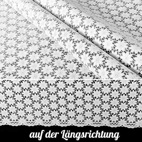 Anro - Tovaglia in vinile cerata, effetto pizzo, impermeabile, 100% vinile PVC, Fiori camomilla bianco., 350 x 138cm