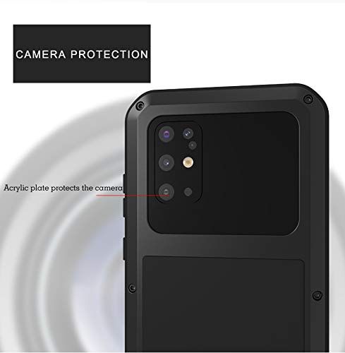 ANROD Custodia Antiurto per Samsung Galaxy S20 Plus,Love MEI Outdoor Ibrido Alluminio Metallo Antipolvere Snowproof Cover,con Vetro temperato, Supporta la Ricarica Wireless (Nero)
