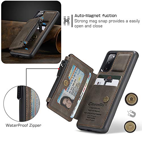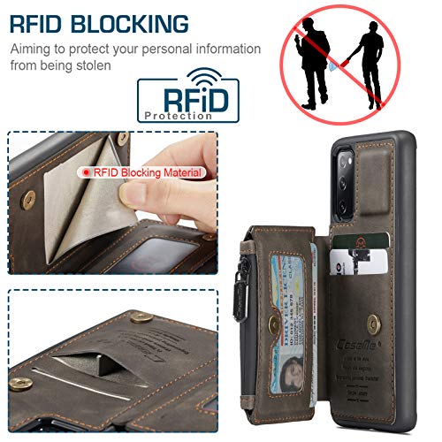 ANROD Portafoglio Custodie Pelle per Samsung Galaxy S20 Fe 5G,CaseMe Doppia Fibbia Magnetica Custodia Antiurto, con Porta Carte, Chiusura con Cerniera, Design Antifurto RFID (Coffee)