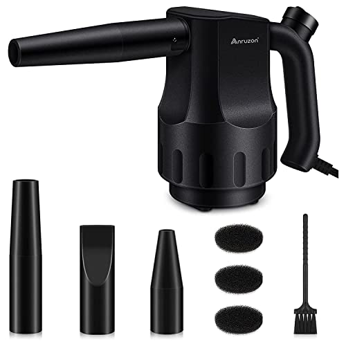 ❤ 【Potente Air Duster】 Anruzon Air Duster può soffiare a 20 m / se 67,5 MPH. La velocità di rotazione arriva fino a 35000RPM. Il potente motore da 400 W può fornire continuamente aria ad alta pressione, che è adatta per una pulizia efficiente di polvere, capelli e sporco ed è adatta per pulire tutte le apparecchiature elettroniche come computer, tastiera, laptop, fotocopiatrici, apparecchiature mediche, fotocamere, modellini di veicoli e il pulizia quotidiana della tua casa.