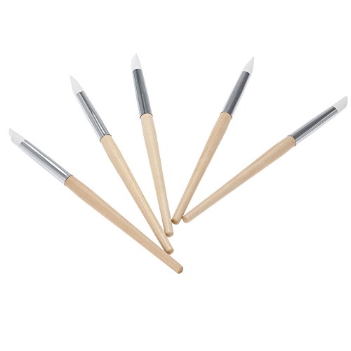 Anself 5pcs/Set Nail Art Silicone Scultura Penna per Rilievo Scultura Mestiere Polacco Manico in Legno Nail Art Set