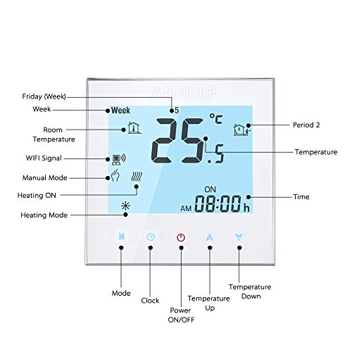 Anself Acqua Riscaldamento Termostato con Touch Screen Termoregolatore Programmabile LCD Display 3A 110 ~ 240V