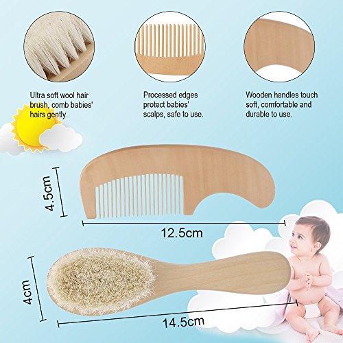 Anself Neonato kit Spazzola per Capelli Bambino Pettinato Lana manico in Legno Massaggio Cuoio Capelluto