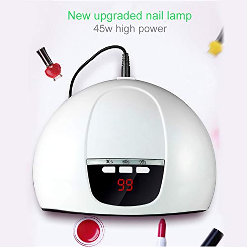 Lampada per unghie da 45 W con 3 timer, anni '30, '60 e '99, dotata di microsfere a LED da 15 pezzi, per asciugare tutti i gel per unghie in modo rapido ed efficace.