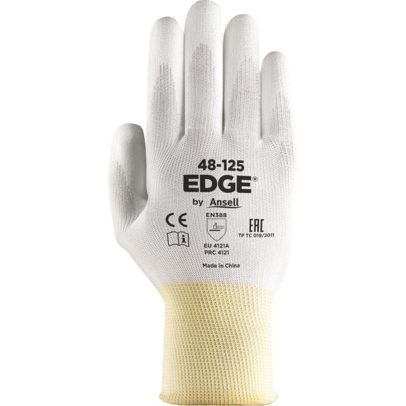 Guanto antitaglio EDGE® 48-125 Approvazione/standard: EN 388:2016. EN ISO 21420:2020. Compatibile con il regolamento REACH Proprietà: - Struttura senza cuciture per un elevato comfort di calzata - Buona resistenza all'abrasione e presa. Elevata sensibilità tattile in aree di lavoro asciutte e leggermente oleose - Resistenza all'abrasione di livello EN 4 - Buona presa - Buona resistenza allo strappo Caratteristiche: - Tessuto a maglia - Con polsino a maglia - Palmo rivestito (PU) Aree di applicazione: Industria automobilistica. Elettronica. Petrolio e gas. Macchinari e attrezzature. Trasporti. Riciclaggio e smaltimento dei rifiuti Materiale: tessuto a maglia e poliestere. Rivestimento in poliuretano Stima: 15 Lunghezza: 215-270 mm Colore: bianco