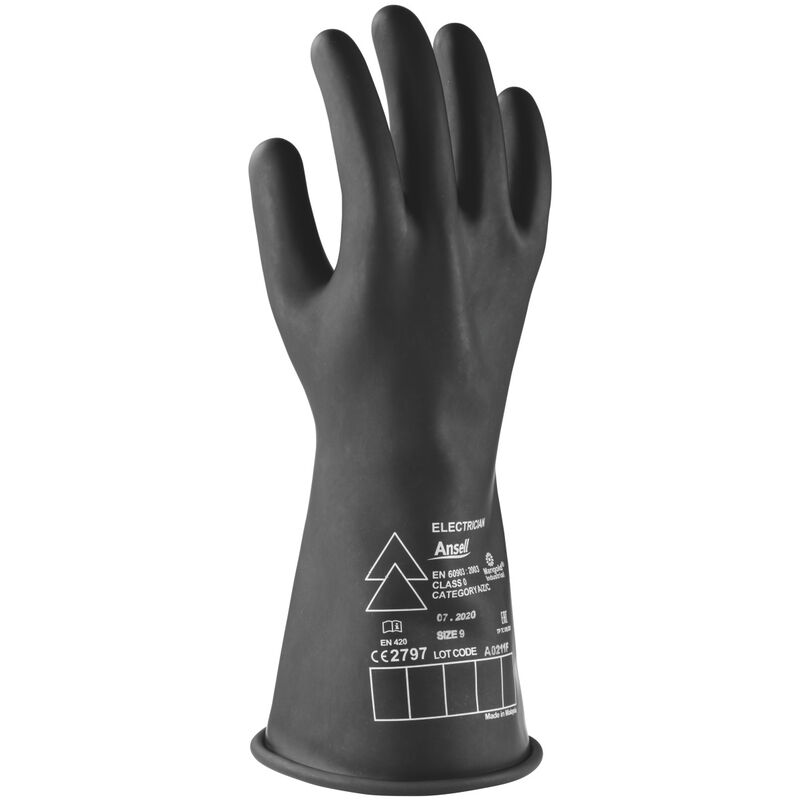 I guanti isolanti Marigold di Ansell per elettricisti sono realizzati in lattice di gomma naturale per una flessibilità e una mobilità delle dita straordinarie. La forma anatomica nella naturale posizione di riposo della mano e le dita non divaricate evitano un rapido affaticamento della mano. Specifica: Lavori con rischio di una tensione di contatto pari a WS ≥ 1000 V. Dati tecnici Colore nero / rosso Tipo di prodotto Guanti per elettricisti Grado di protezione 0 Lunghezza mm 360 Materiale supporto Lattice EN 60903 AZC Peso g 97,6 Contenuto 1 Limitazione di tensione massima V 1000 Utilizzo riutilizzabile Norma Protezione contro la radioattività (EN421) Tipo di guanto Guanti per elettricisti Misure guanti da lavoro 9 EN 60903 categoria A (acidi) sì EN 60903 categoria C (temperature estremamente basse) sì EN 60903 categoria Z (ozono) sì