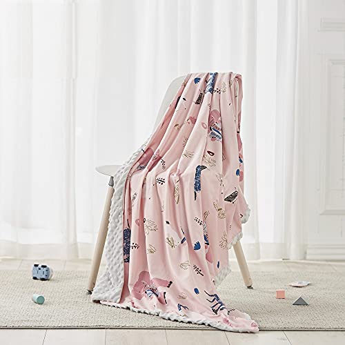 Anshen Coperta per gattonare, Coperta per Bambino 100% Cotone (80X90 CM), Copertina Neonato Minky in Cotone, Coperta per bambini a doppio strato, coperta per passeggino (Rosa Chiaro)