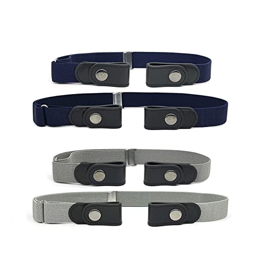Anshili 4 pezzi cintura senza fibbia regolabile, cintura elastica elastica per mamma e bambini, larghezza 2,5 cm, blu + grigio., Small