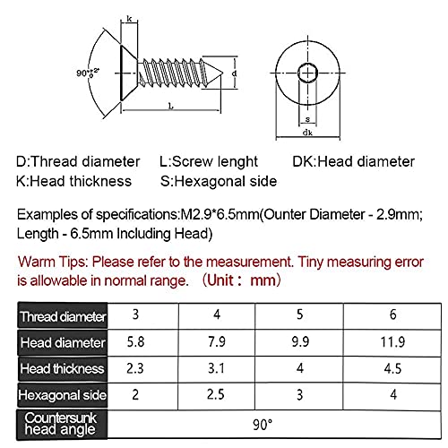 ANSIEDIO Viti Autofilettanti a Testa Piatta a Brugola - Acciaio Inossidabile Viti per Legno Viti a Brugola M5×30mm,20 pcs