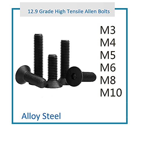 ANSIEDIO Viti a Testa Svasata a Brugola, Acciaio Carbonio Esagono Testa Piatta Viti a Macchina Allen Bulloni Nero, M3×8mm,30 pcs