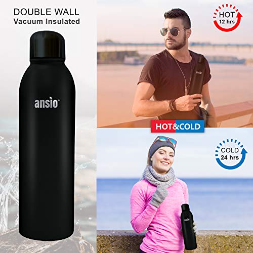 ANSIO Borraccia Termica,Bottiglia Acqua,Isolamento Sottovuoto a Doppia Parete Borraccia Acciaio,Bottiglia Acqua in Acciaio Inox,Ideale per Lo Sport Campeggio Escursionismo Ciclismo- 500 ML-Tutto Nero