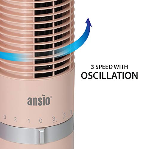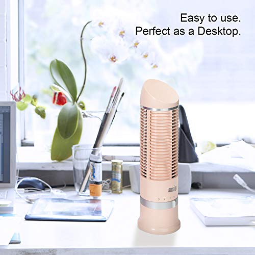 ANSIO Mini ventilatore a torre, piccolo ventilatore, ventilatori a torre con tre velocità di oscillazione ideali per scrivania, comodino, casa o ufficio-Oro rosa