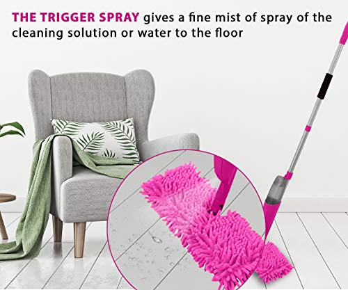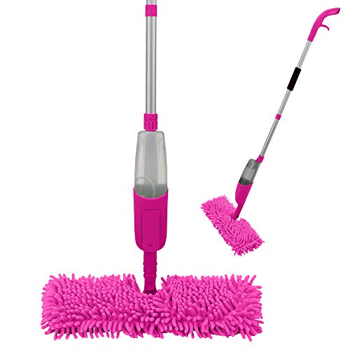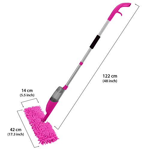 ANSIO Mocio Lavapavimenti a Spruzzo,Mop Pavimenti con Microfibra Mop Cuscinetti &350ml Flacone Spray Riutilizzabile per Casa,Cucina,Legno Duro,Laminato,Legno,Ceramica Piastrelle per Paviment-Rosa
