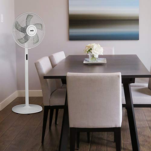 ANSIO Ventilatore a piantana da 16 pollici con telecomando - Ventilatore verticale con 8 livelli di velocità - Bianco (batterie non incluse)