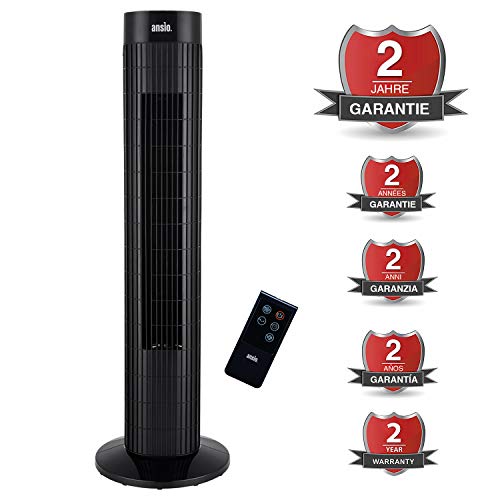 ANSIO Ventilatore a torre oscillante nero da 30" con telecomando - Ventilatore a colonna - Ventilatore a piedistallo da 75 cm - Ventilatore - Modalità vento a 3 velocità a 3 velocità con cavo lungo