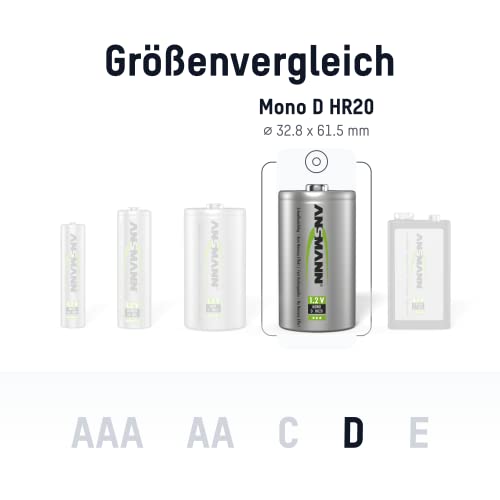 ANSMANN 4x Batterie ricaricabili stilo Mono D - 5000 mAh 1,2 V NiMH - Pila a ricarica veloce - fino a 1000 cicli di ricarica eco-friendly