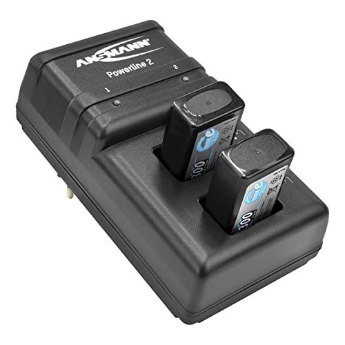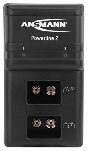 ANSMANN Caricatore Powerline 2 per batterie 9V - Caricabatterie intelligente doppio NiMH / NiCd E-Block - Carica di manutenzione e indicatore LED