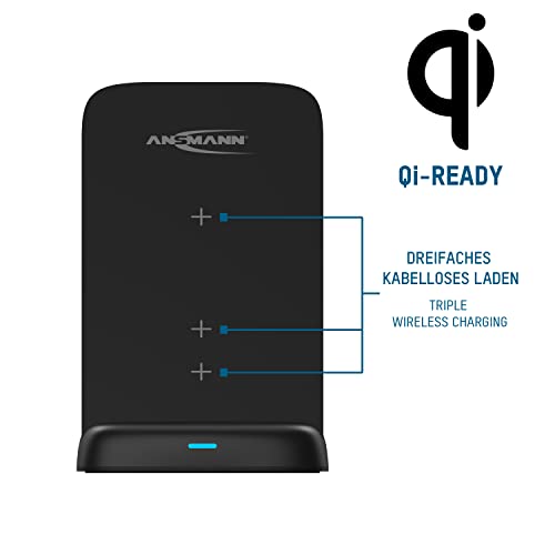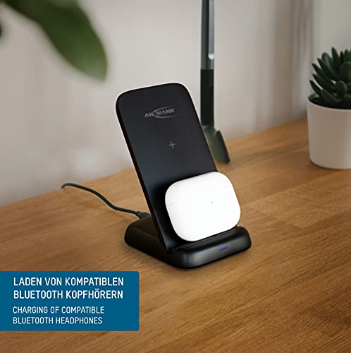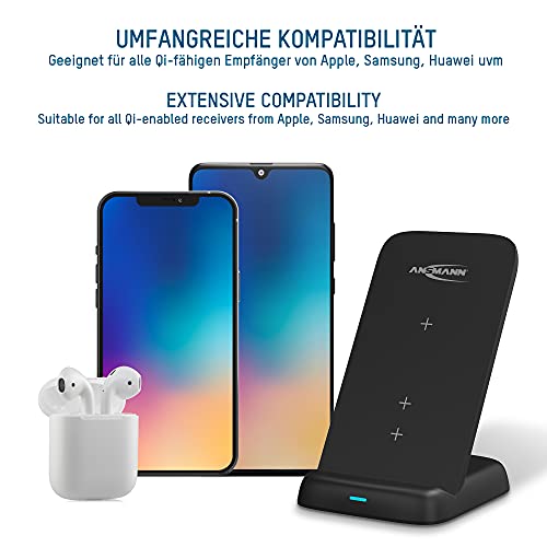 ANSMANN Caricatore Qi da 15 W verticale - Stazione di ricarica wireless a induzione per dispositivi abilitati Qi come Apple iPhone (12, 11, XS, XR, X, 8), AirPods, Samsung Galaxy (S21, S20, S10), ecc.