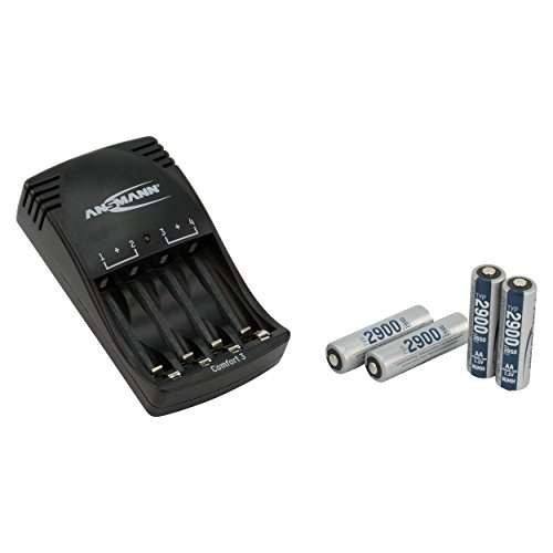 Ansmann Comfort 3 batteria del caricatore per AAA/AA ricaricabili + 4 X mignon AA batteria Tipo. 2900 (Min. 2650 mAh)