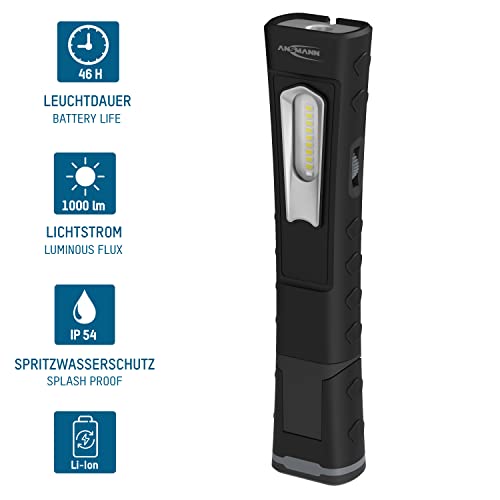 Ansmann Lampada da ispezione per officina ricaricabile 10 W SMD LED fino a 1000 lumen, con stazione di ricarica, ideale per l'uso professionale in officina, cantiere, industria, ispezione