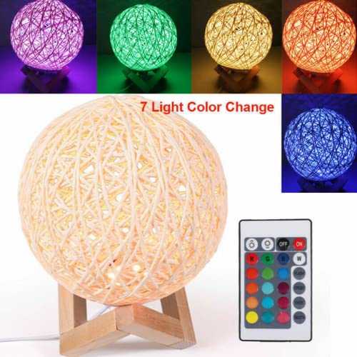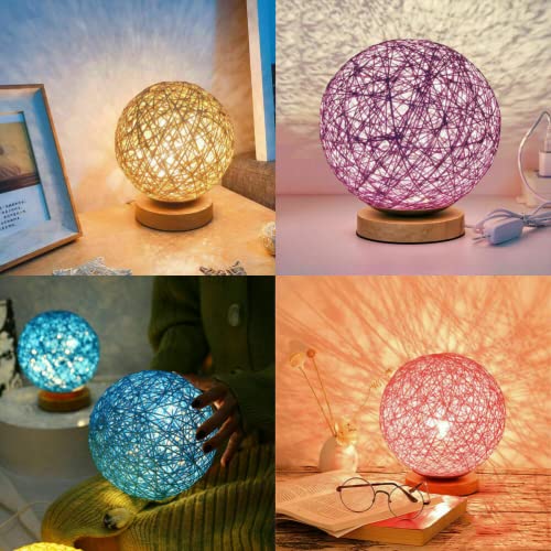 Anso Lampada notturna a LED con sfera in rattan, da tavolo, scrivania, comodino, con base, per casa, camera da letto, multicolore (beige)