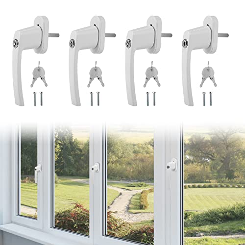 Ansobea 4xManiglie per finestre, Serratura a Spinta con Cilindro per Finestre,Chiusura di Sicurezza Bambini con Chiavi-Bianco