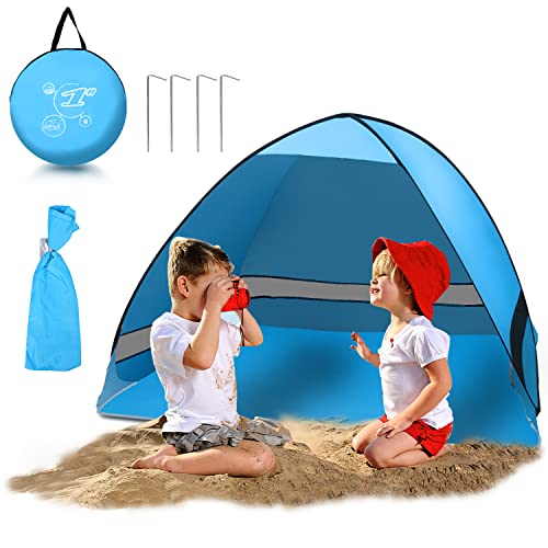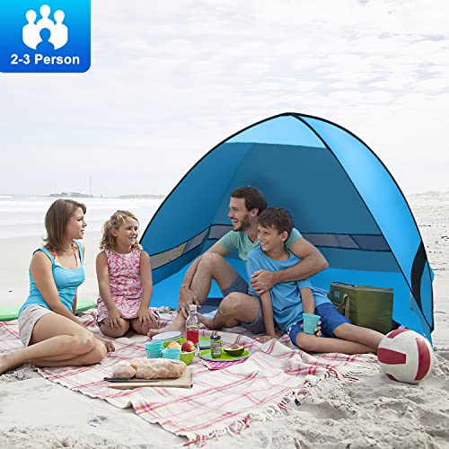 Ansobea Tenda da spiaggia pop up, portatile, automatica, da spiaggia, da campeggio per 2-3 persone, protezione UV50+, protezione solare da spiaggia, con borsa per il trasporto per la famiglia