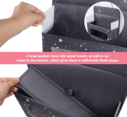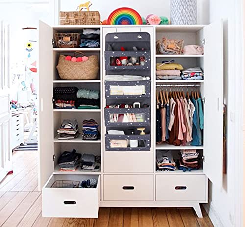 Anstore Portaoggetti da Appendere con 4 Ripiani, Organizzatore da Porta e Parete, Capiente portaoggetti da Porta per Accessori, Pratico Portaoggetti in Stoffa con Ganci, Salvaspazio Armadio, Grigio